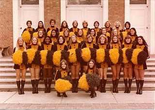 I’m off to my college for Homecoming this weekend, but even bigger ( especially since I haven’t been to one Homecoming in 30 years) is I’m attending because of the 100th Year Anniversary of the Marching Band- of which my Pom Pom Squad was part. More to come on this after the weekend, but in the meantime, here’s a picture of my squad in 1974 at the University of Maryland ( can you find me with my Farrah Fawcett hairstyle which we all had in 1973 on?)
