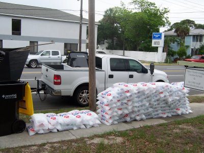 Beach Bum Parade has come and gone and was it’s usual big time for kids of ALL ages! These three pictures show some of the preparation in getting ready for the Friday night 6:30PM Kick off… This is two homes on Butler Avenue- this is a very well respected Doctor with over 1 ton of ice ( he very proudly told me….) filling up all the garbage cans . The colder the water the better!!! And I loved the banner also hanging from a home on Butler Ave!