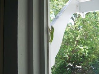 I’ve learned alot about my front porch wildlife from the Postles and the Parkmans. These are actually Anoles not chameleons or gecko’s ( hey in my world those little green creatures looked like the Geico green guys on all those commercials!)