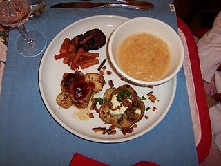 I don’t intend to sound food obsessed, but after all it is the holidays! And I saw a great blog post about having Springform pan pants ( meaning for you non cooks that your pants can expand!) but that’s the type of Christmas day we had! Katie truly outdid herself and had lots of fun doing so. She created from scratch the pumpkin pie with pears nestled in a homemade gingersnap crust with a few pieces of crystallized ginger. The dinner itself was seared sea scallops- fresh and wild- not frozen and farm raised, roasted root vegetables– beets and carrots, sliced redskin potatoes with goat cheese ( she brought from Brevard– one of her colleagues makes the cheese) and maple bacon, her home made applesauce.