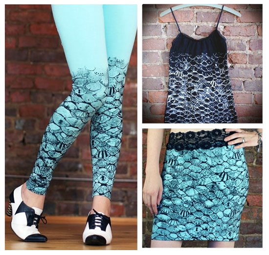 Aren’t they awesome?! You can check out the pencil skirt, leggings, and tank top over at the Carousel Ink shop. make sure to browse all the other gorgeous offers while you’re there, too! WOW! Mermaid inspired clothing…LOVE it!