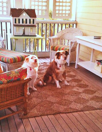 Brewster and Bella enjoy the breeze at Dutton-Waller Cottage.