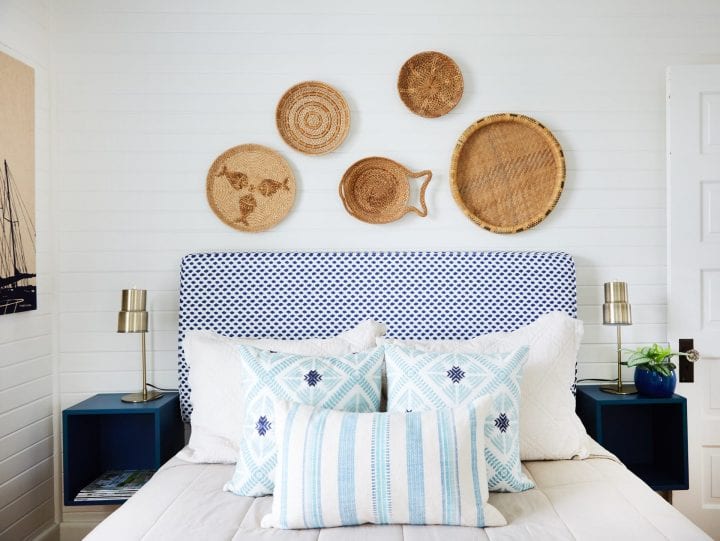 Are you blue? No. You’re tranquil and at peace in this glorious blue bedroom. Blue fabrics in stripes and patterns are contemporary and modern and perfectly at home in this historic cottage.