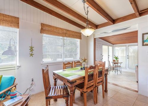 We love this mid-century home from the 1950s formerly known as Canty’s Cottage. Vintage, yet freshly painted and redecorated. Cantaloupe Cottage is a classic Mid Century Modern island home built in the 1950s and completely restored with Central AC and all modern updates. This ground-level, pet-friendly home features a large fully fenced back and side yard with views of the Back River. You’ll love the Florida room and an amazing kitchen! The Tybee Tiki-Hut is the ultimate finishing touch! Blend your margaritas (or smoothies ~ we won’t judge!) and enjoy a little island style right here!