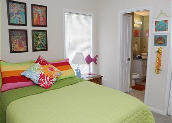 This is one of the bedroom doors in the cottage! Isn’t this fun? And the bedroom is cheerful and colorful too…what a creative way to keep the quirk of our little island alive and well!